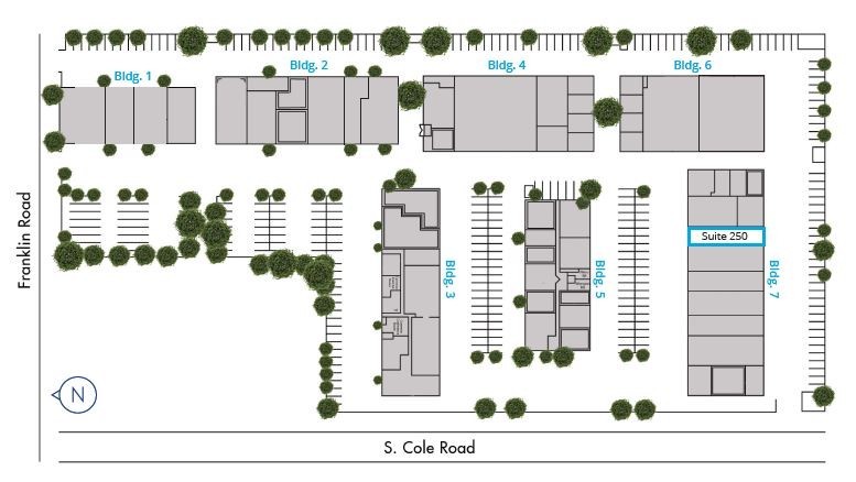 We are in Building 7 of the Franklin Business Park on the southeast corner of Cole & Franklin.